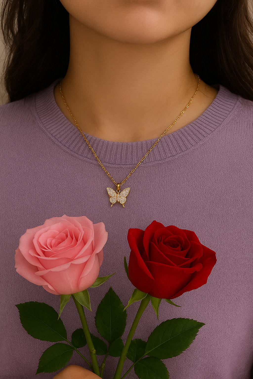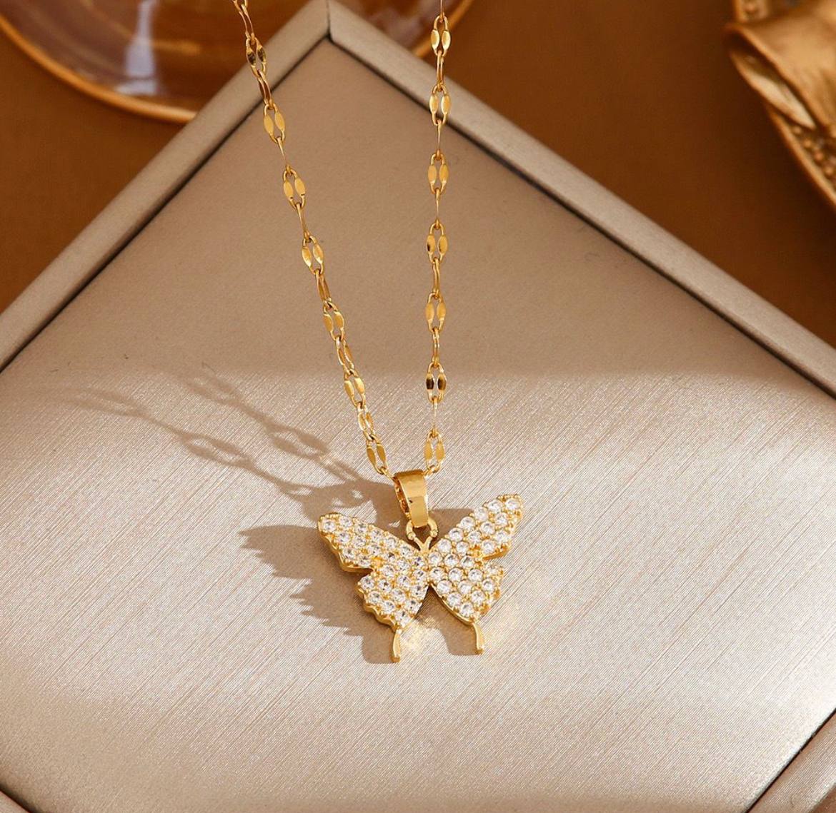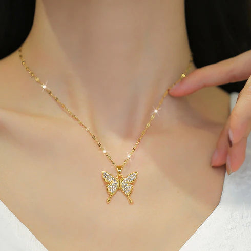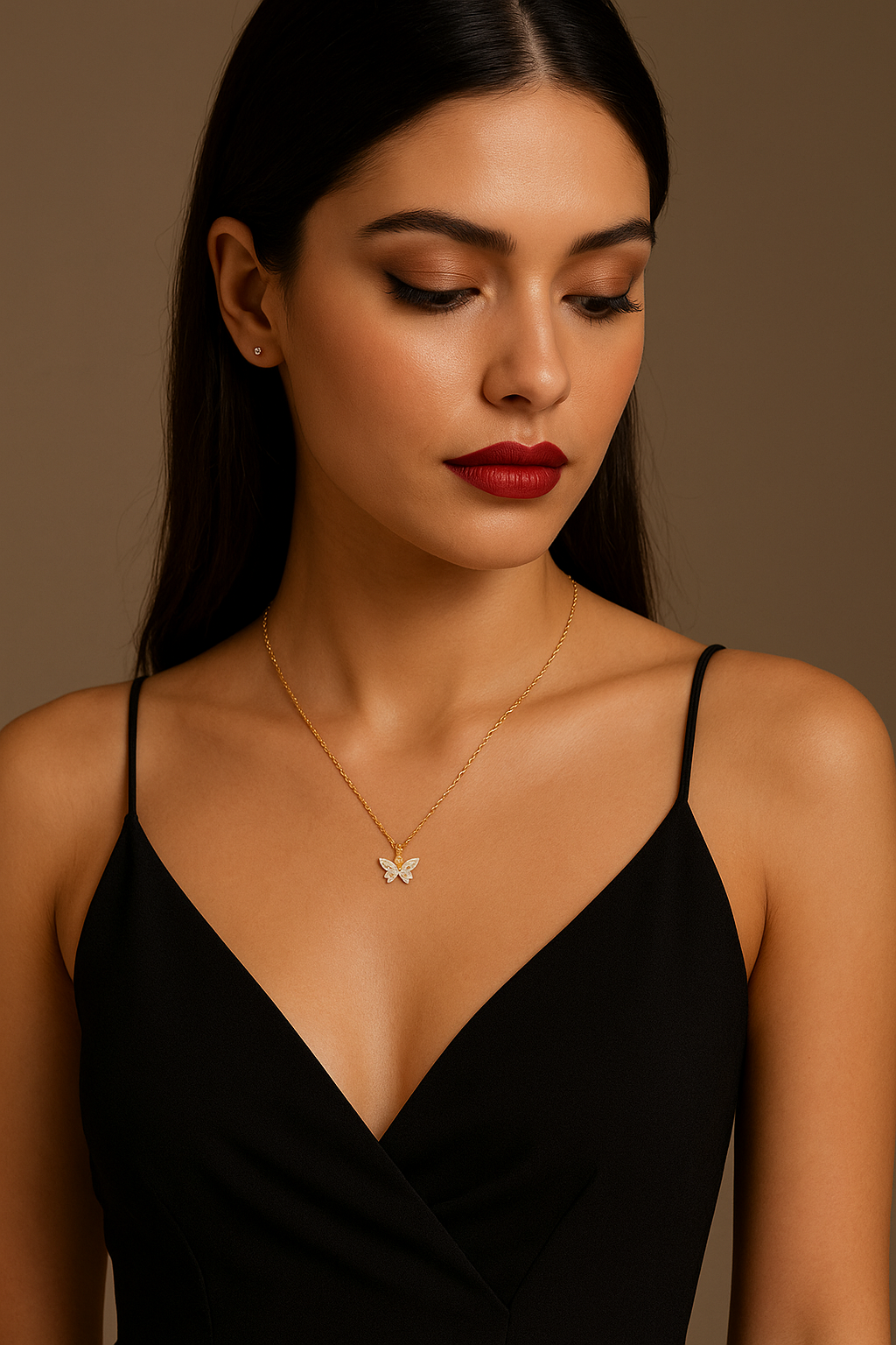 El Collar Mariposa Luxe está diseñado para destacar tu estilo personal mientras simboliza elegancia y transformación. Su diseño en acero de titanio hipoalergénico y circonitas cúbicas brillantes aporta un toque de glamour y comodidad, perfecto para realzar tu presencia en cualquier ocasión.