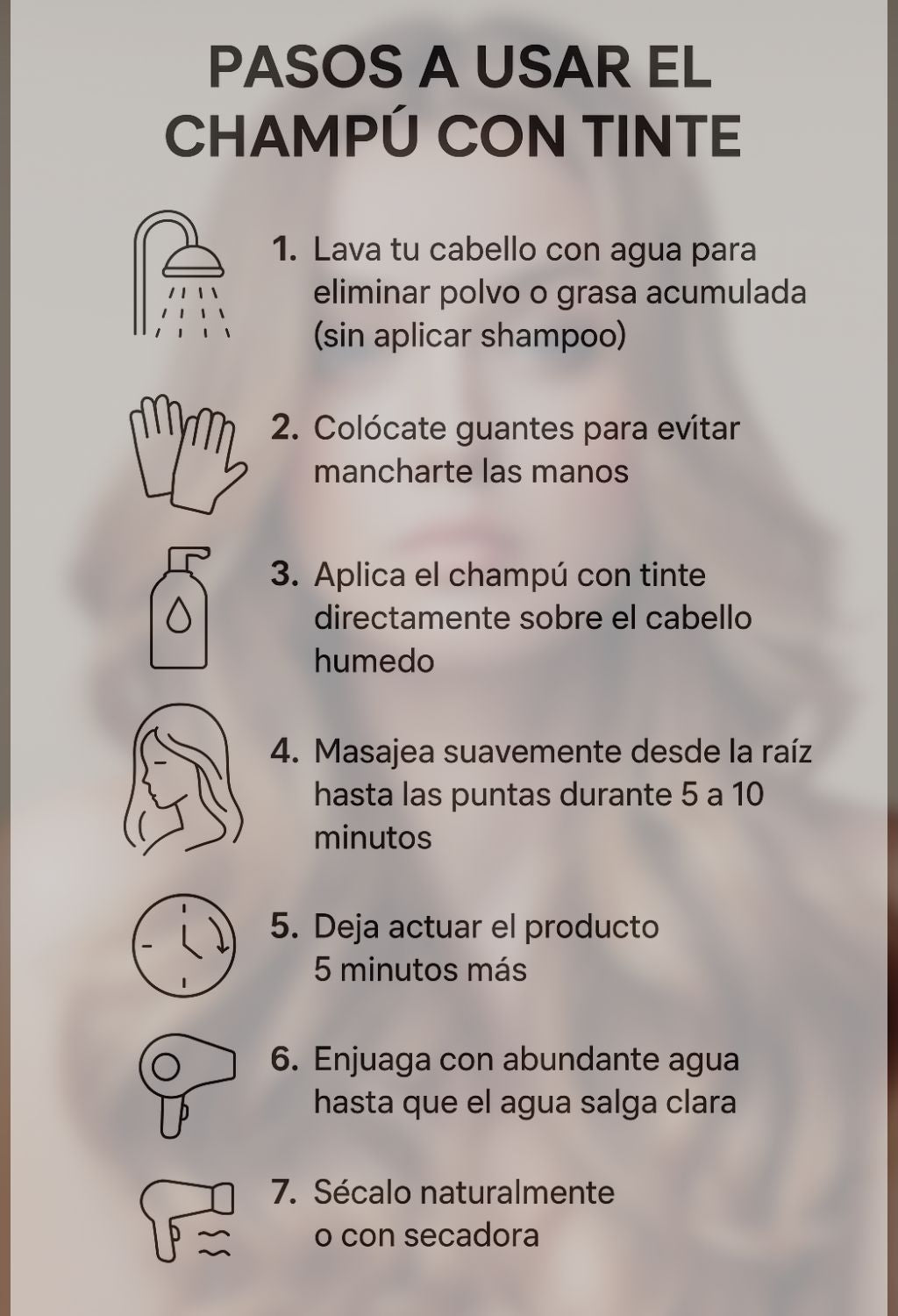 Shampoo cubre canas sin amoníaco, con fórmula botánica que nutre, fortalece y da brillo. Resultados duraderos hasta 4 semanas. Ideal para hombres y mujeres.